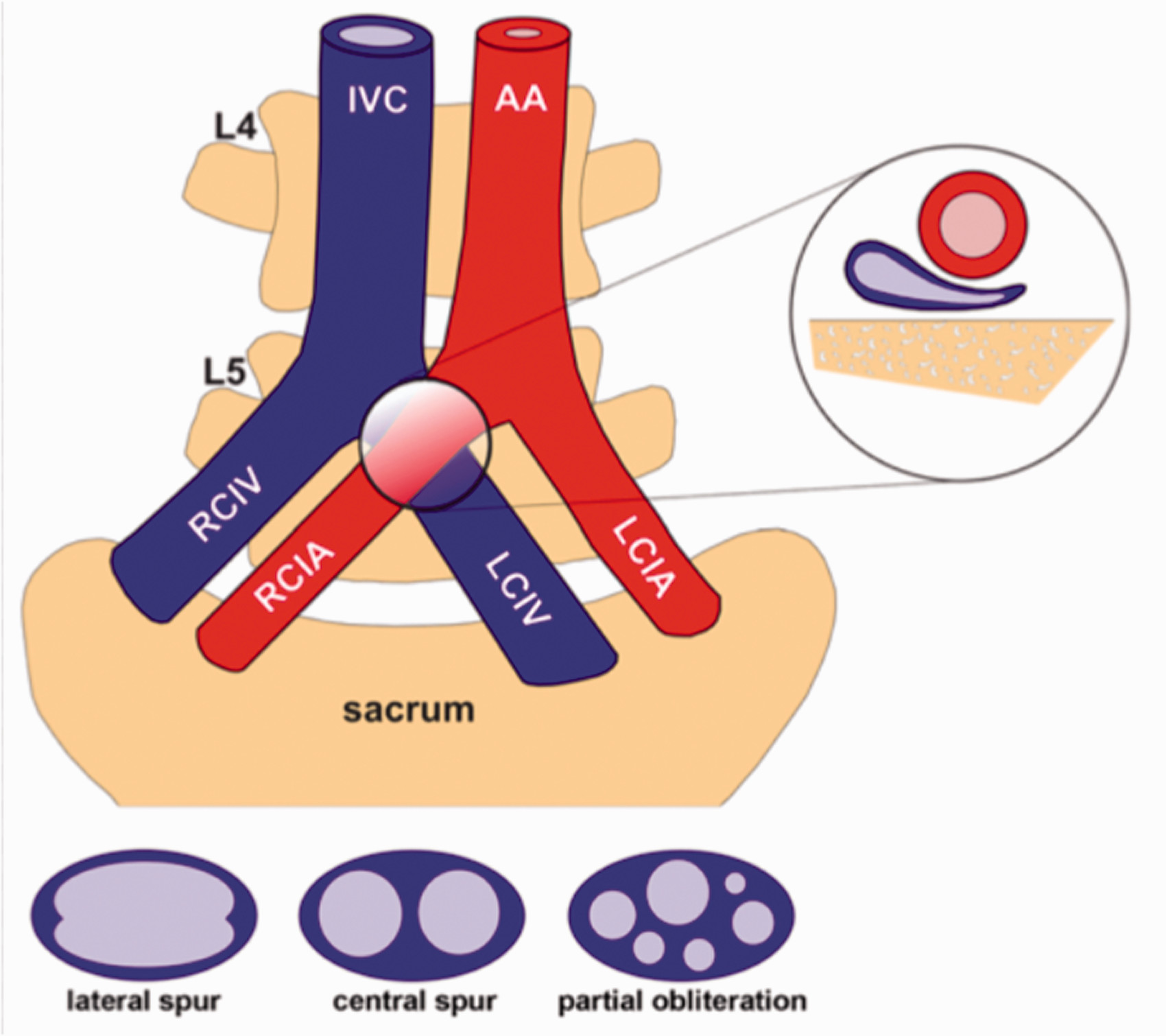 عبور این رگها از روی همدیگر باعث ایجاد فشار به رگهای پایینی شده و این فشار در طول زمان می تواند باعث تنگ شدن و حتی انسداد کامل عروق شود. با توجه به اینکه فشار داخل سرخرگها بسیار بیشتر از فشار داخل سیاهرگها است در اغلب موارد سیاهرگهای مجاور سرخرگ ایلیاک تنگ و فشرده می شود.